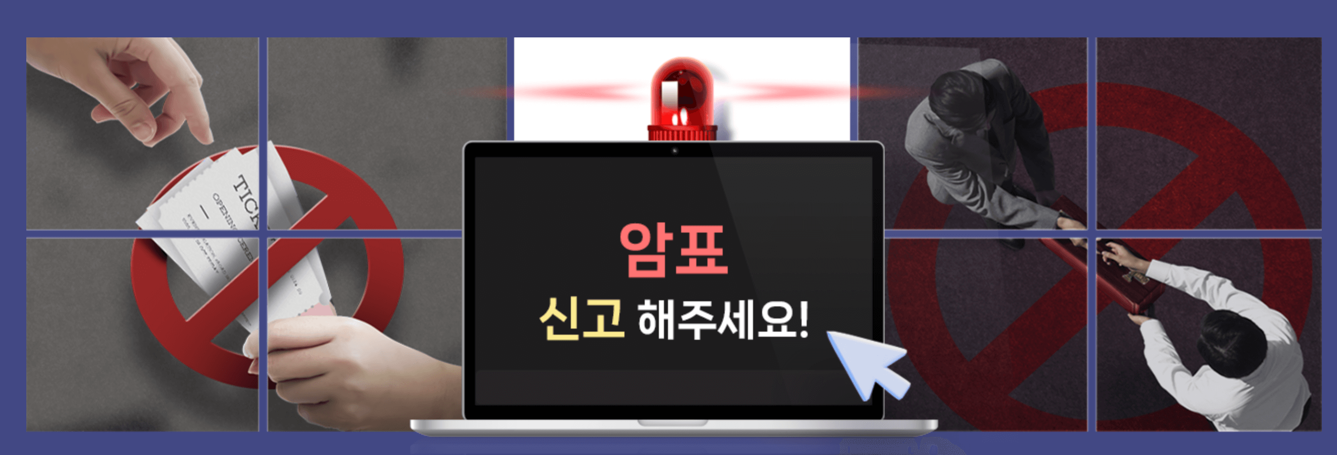 아래 링크를 통해 온라인 암표신고가 가능하며 문화예술분야나 프로스포츠의 암표 등 포괄적으로 다루고 있기 때문에 거의 모든 암표는 여기서 신고할 수 있습니다.