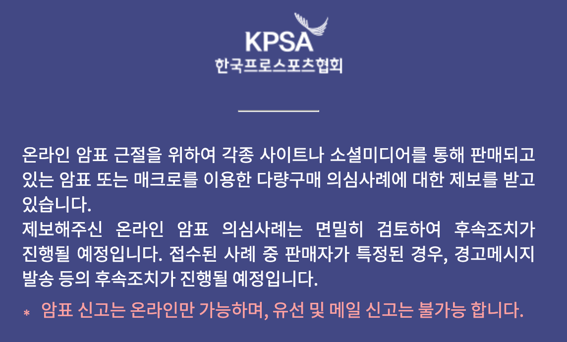 공연법 개정안 (2024년 3월 22일 시행)- 온라인암표상도 처벌이 가능합니다.